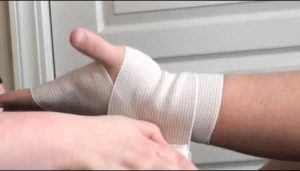 Compression of an injured area makes a big difference in the first 48 hours in managing swelling and limiting bleeding from the injury. In fact, research shows that swelling is significantly reduced if all you can do is provide compression and elevate the injured area if you don’t have ice available.  This can be achieved with a compression bandage such as a tensor, or certain taping techniques.  Bandaging should be performed from distal ( away from midline) to proximal (close to midling). An example is wrapping from your wrist to your shoulder for an elbow injury and not the other direction.  If you are using a tensor make sure to remove it before bed, so you don’t cut off your circulation.  Here is an example of wrapping a tensor bandage on an ankle https://www.youtube.com/watch?v=ZGFznb-5jTo